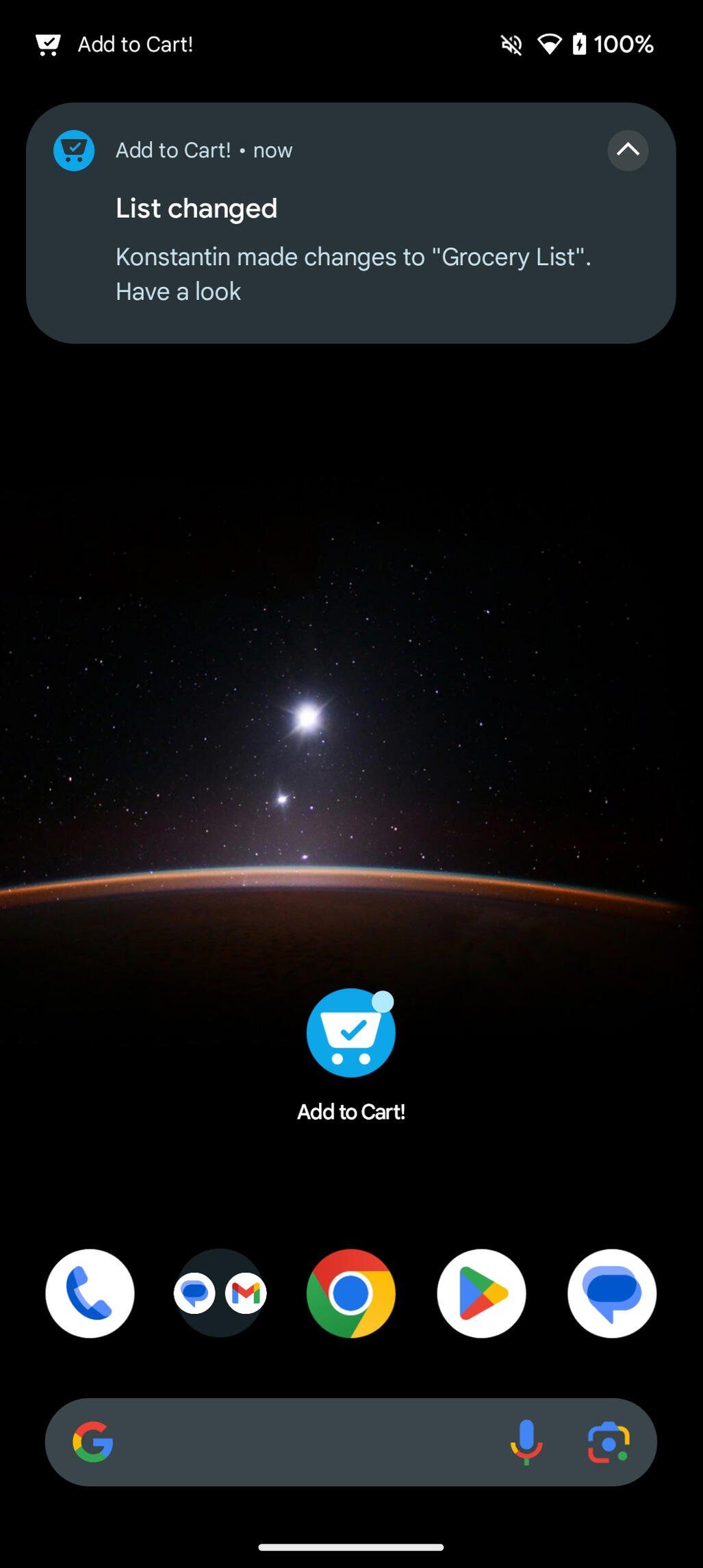 Shared shopping lists are updated in real-time when changes are made. Receive a notification shortly after a member made changes to the list.